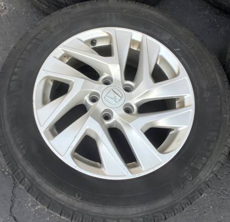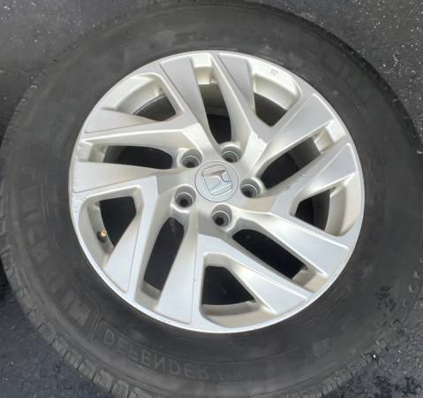 Selling nice Set of: 17” Honda CRV Sport C-RV Factory EX OEM Wheels Rims Tires 17 inch Wheels are in great condition. Honda center caps included. Tire Size/ Brand: 225/65/17 225/65r17 Michelin All...