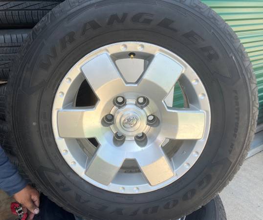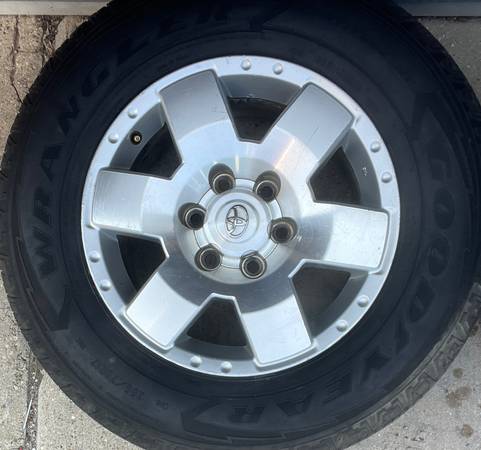 Selling Nice Set of: 17” Toyota FJ Cruiser Tacoma 4Runner Sport Factory OEM Wheels Rims Tires 17 inch Wheels are in good condition. Tire Size/ Brand: 265/70/17 265/70r17 Goodyear All Season Tires....