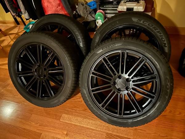 Selling my winter wheel/tire setup off of my glc 63 amg. The wheels are 5x112 bolt pattern and 20x8.5 +32 TSW Pescara’s. They’re wrapped in 265/45R20 pirelli scorpion winter tires. All 4 wheels have functioning tpms installed. One tire has never seen the pavement. One is 6/32, another is 4/32, and the last needs to be replaced (bad luck with nails). The wheels are in perfect condition minus one little nick pictured. Comes with center caps. OBO