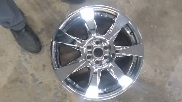 Chrome clad 20" x 8" aluminum wheel off a 2010 Cadillac SRX. In great condition, except for a couple of discolorations and chrome chips shown in the photos.