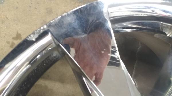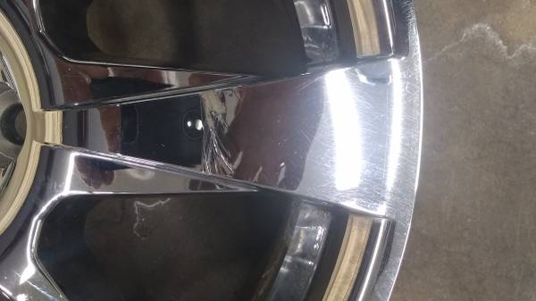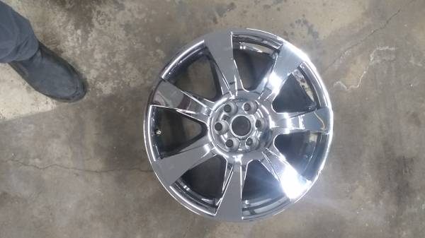 Chrome clad 20" x 8" aluminum wheel off a 2010 Cadillac SRX. In great condition, except for a couple of scratches and chrome chips shown in the photos.