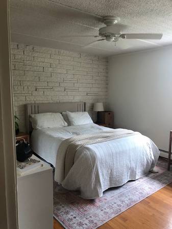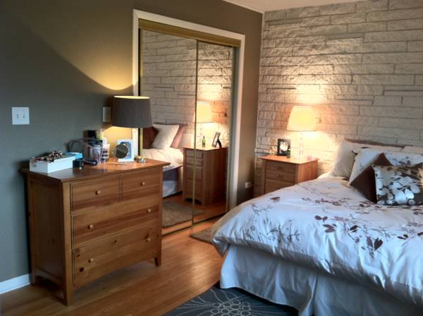 Large bedroom able to handle a king size bed, dresser, desk and two night stands. Stone walls separating each apartment making for great aesthetics (see photos) and a great sound barrier.