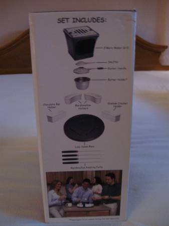 This is a indoor/outdoor Casamoda S'mores Maker never been used new in the box, canned chafing fuel sold separately. Cash at time of pick up.