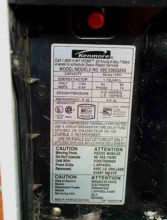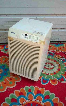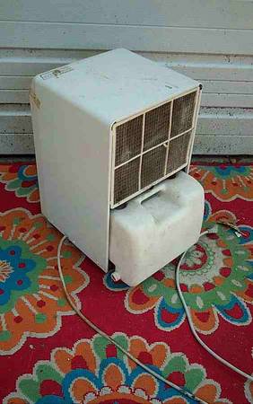 Vintage Sears Kenmore dehumidifier. Features a green LED digital number readout display. Complete with rear water bucket. Strong white metal frame. LED numbers light up though I could not get unit to work. If you are handy maybe you can get it to work. Sold as is and final sale. Measures aprox 12 3/4" wide x 13 1/4" deep x 21" height. Pick up from North Aurora, Illinos. Please call or text show contact info