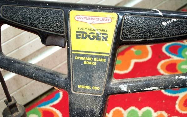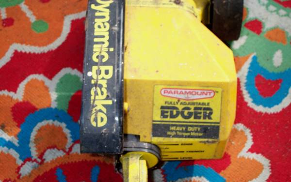 Vintage Paramount electric lawn edger. Model 980. Works fine. General wear from use. Fully adjustable. Heavy duty high torque motor. Features dynamic blade. Measures aprox 10" length x 42" deep x 33 1/2" height. Pick up from North Aurora. Please call or text show contact info