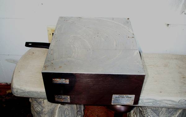 Pizza Pal Commercial Grade Electric single Pizza Oven Model 412. It works! Made in U.S.A. Portable unit great for bar pizzas. Plugs in to standard 110 wall outlet. Strong stainless steel. Oven would benefit from some cleaning. Mechanical cook timer works fine. Measures aprox 18" length x 15" deep x 7 1/4" height. Pick up from North Aurora. Please call or text show contact info