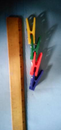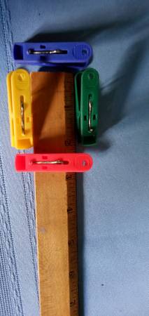 48 colorful clothes-pins. 4 colors (12 of each). Could be used as large paper clips or strung on a line for organizing things. 2 inches in length.