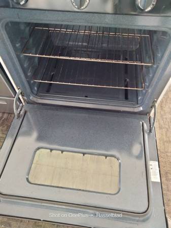 Hot Point Gas Oven Range in Great Working Order Clean*In White Automatic ignite Features Bake Oven Broil Clock **Local* Delivery* *and Installation Available**and *for extra.**