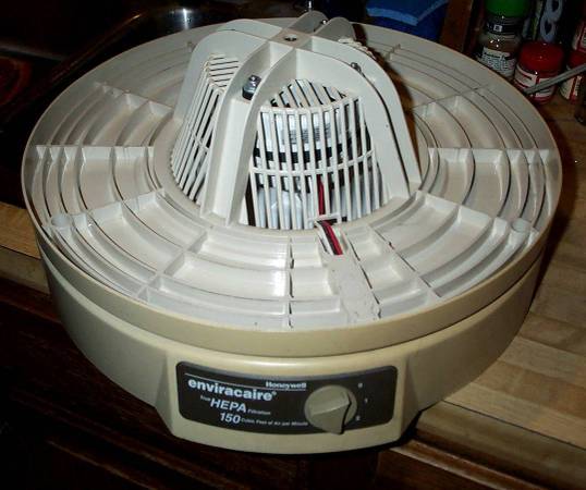 BASE ONLY as pictured. Honeywell Enviracaire air purifier model 11520. True Hepa filtration. 150 cubic feet of air purification per minute. Powers on fine and fan turns. Missing the top section with the filter that seats on top. Works as a nice circulation fan for a bedroom as it is. Measures aprox 16" round x 7" height. Pick up from Villa Park, IL. Please call or text show contact info