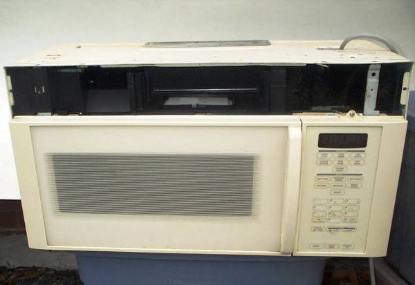 Under counter Kitchenaid large microwave. Built in exhaust fan for over stove mounting. Tested and microwave works great. Exhaust fan works. Nice blue LED digital clock display. Model KHMS105EAL-0 and microwave is white metal. Manufactured August of 1997. Standard electric plug 110 volts. Microwave measures aprox 30" wide x 13 3/4" deep x 15 14/16 height. Pick up from Villa Park, IL. Please call or text show contact info