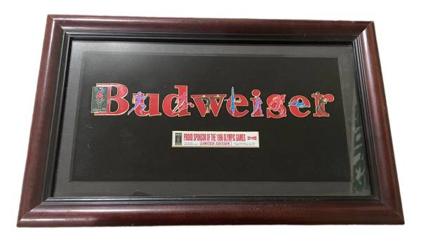 1996 Atlanta Olympic Games Budweiser Pin Set Limited Edition Framed.