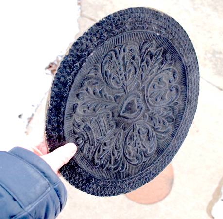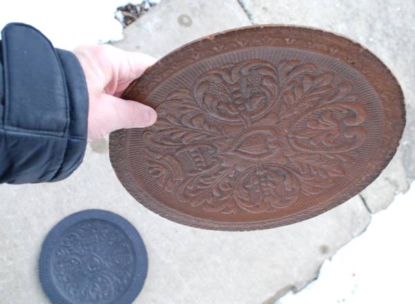 These are old, Brown measures, 11" Round, Black 12" Round. Thin, about 1/8".