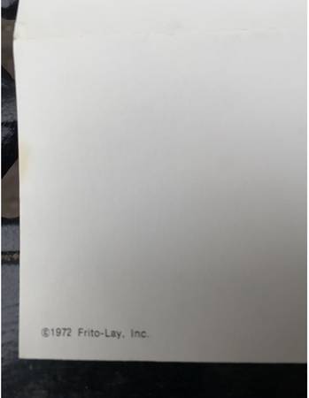Rare vintage 1972 W.C. Fritos Fields Fritos lay advertisement poster. Greetings my little chip a dees. This is in good condition with original folding creases, bright vibrant colors very light wear for age. Measures 17"by 22".