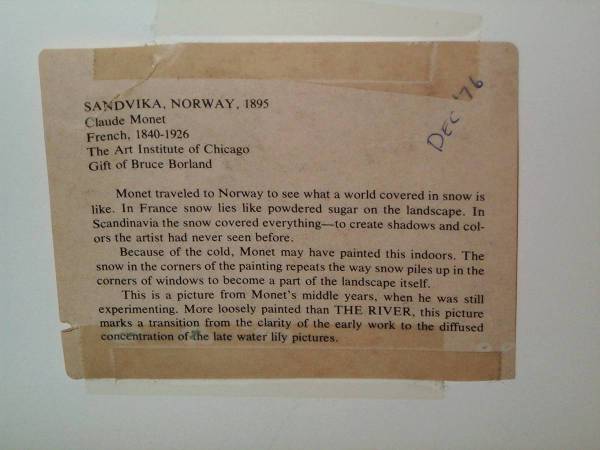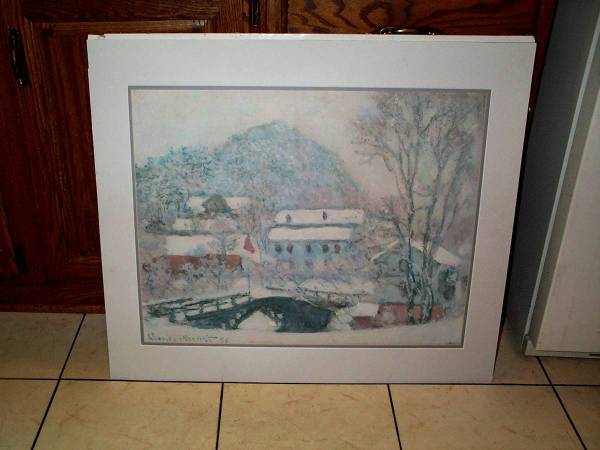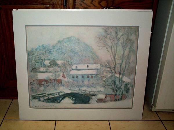 This print was professionally matted and framed by Fast Frame in Wheaton Illinois. Claude Monet's painting of "Sandvika, Norway". Added bonus newspaper cut out on back from 1976 describing the painting. Paper frame measures 28" x 24". Picture area measures 23" x 18". Picture is in perfect condition. Paper frame has some wear. Exactly as pictured. Easy pick up a few blocks north of Roosevelt Road. Please call or text show contact info