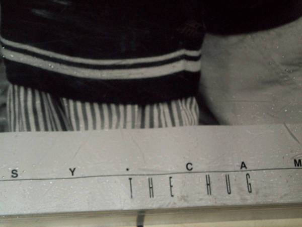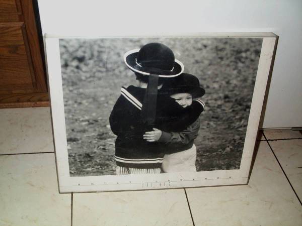 Black and white print "THE HUG" by Betsy Cameron. Framed in thick plastic ready for wall hanging. Measures 20 1/4" wide x 16 1/4" height. Frame is 1 3/8" thick. Used condition with some wear. Pick up a few blocks north of Roosevelt Road. Please call or text show contact info