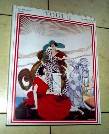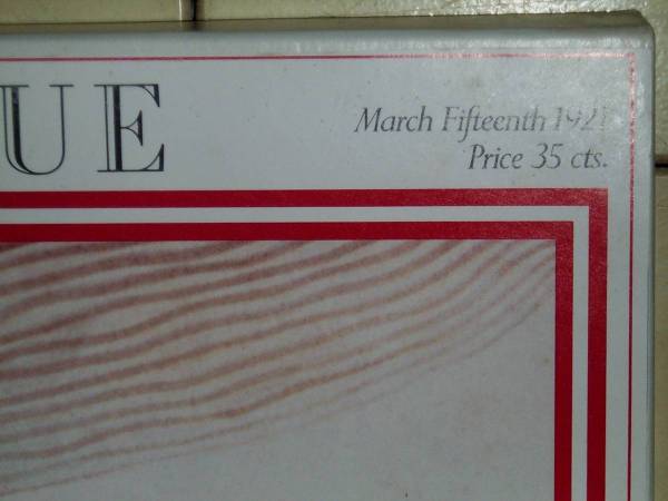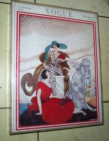 Print of VOGUE magazine front cover from March Fifteenth 1921. Ladies fashion and dresses. Vibrant color. Encased in a frame with a plastic dome cover that slides on top to protect the print. Pick up from Villa Park, IL. Please call or text show contact info