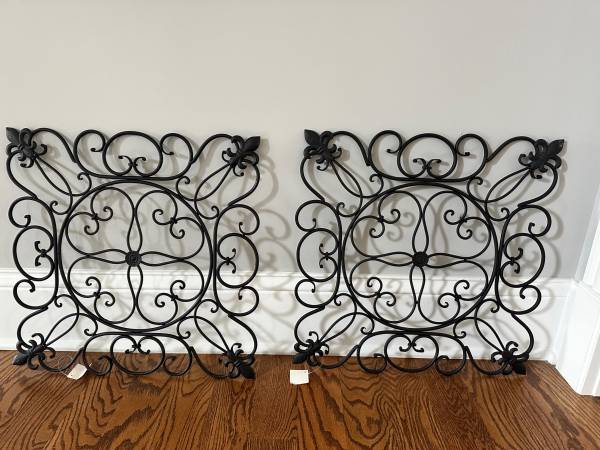 New black brown ornamental wall art, 2 pieces. Approximately 19” x 19” $40.00 cash for the pair DO NOT ASK IF STILL AVAILABLE. AD WILL BE TAKEN DOWN WHEN SOLD.