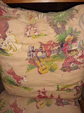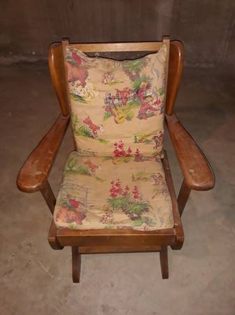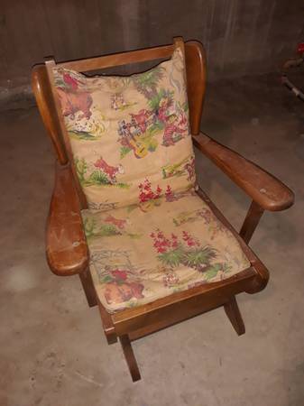 Antique Wood/Metal Child Glider Rocking Chair Cowboy cloth pattern