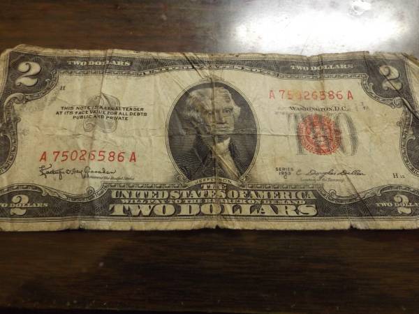 My rough condition 72 year old semi rare 1953C two dollar us currency bill in which I DO NOT respond to any text or email addresses ONLY a phone call and my phone gets shut off nightly at 7pm