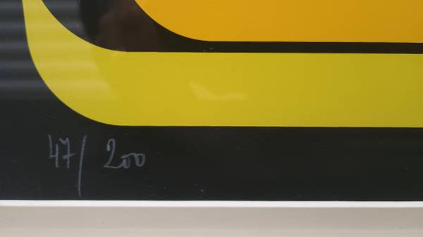 The artwork is a signed, limited edition serigraph (47/200) by Jean-Pierre Vasarely (Yvaral), featuring concentric squares with an optical illusion effect—is consistent with his Op Art screen-print series from the 1970s–1990s.