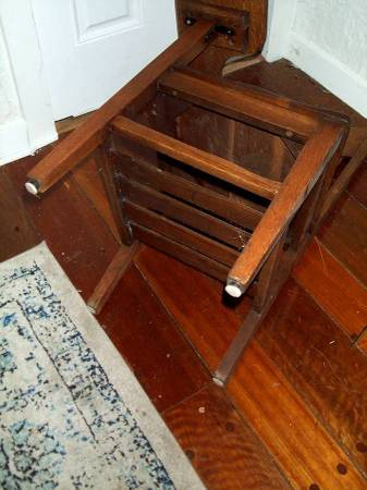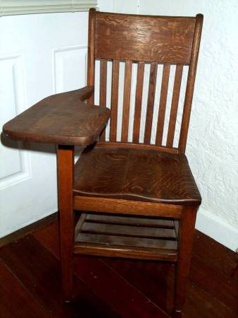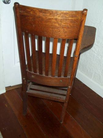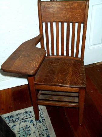Antique desks like this are nearly imposible to find in this good of condition. Gorgeous vintage single seat desk with attached writing or eat tray. Heavy solid wood. Circa 1920's 1930's 1940's vintage. Bottom rack for books, papers, storage etc. Felt pads on bottom for no scratching on the floor. They sure don't make desks like this any more. If you collect vintage desks that you can use as well as enjoy...or need a period correct prop...this desk may be for you. Measures aprox 22" length x 25" deep x 38" height. From floor to seating area 18 1/4" height. Pick up from North Aurora. Please call or text show contact info