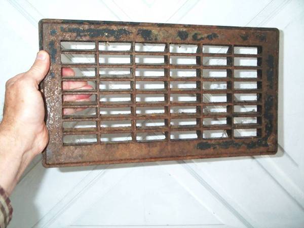 Hard to find antique circa 1930's 1940's heavy metal wall or floor heat vent cover. Keep your vintage home period correct. A little cleaning and spray paint will make this vintage vent or intake vent cover look great again. They just don't make them like this any longer. Measures aprox 13 14/16" length x 1" thick x 7 14/16" deep. The ledged area that inserts measures 12" length x 5 3/4" deep. Pick up from Villa Park. Please call or text show contact info