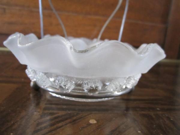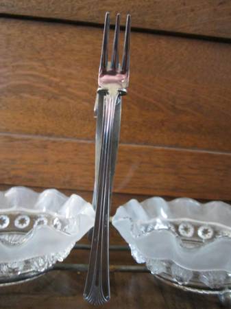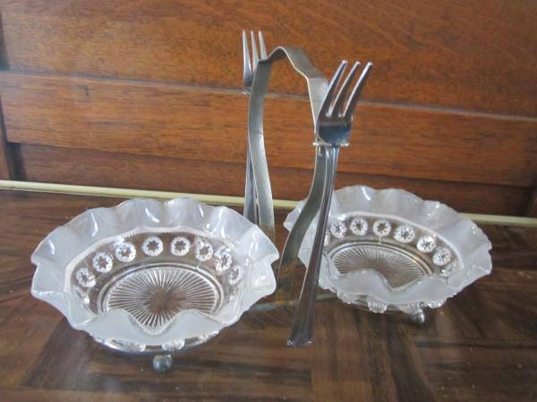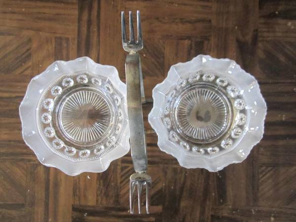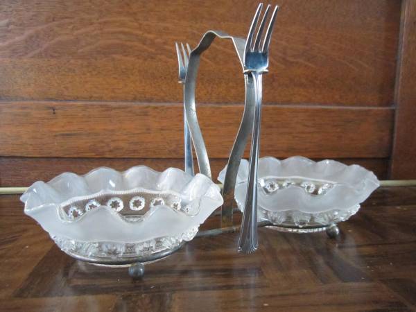 Vintage Double Glass Relish Dish with Silver Plated Holder and Two Forks 2830