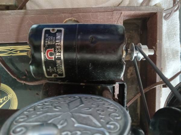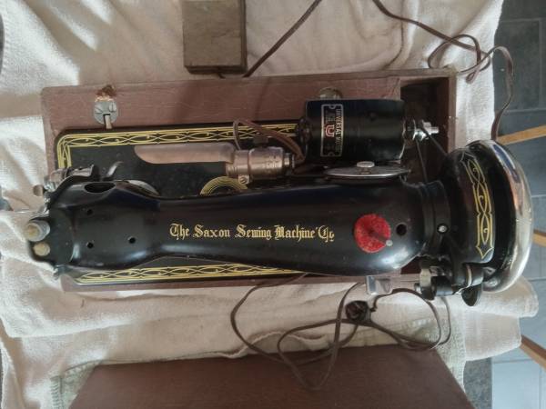 Saxon Sewing Machine - Model # F2514625.Original very rare working vintage Saxon sewing machine made in occupied Japan in the 1940's. Motor works good, currently foot pedal not working. Needs a new belt. Sewing Machine in Good Condition. Comes with Antique Case with Carrying Handle in fair condition.