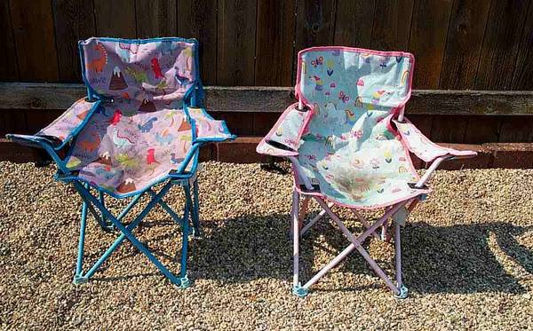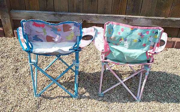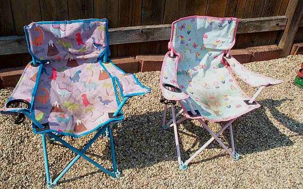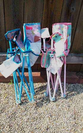PRICE GETS BOTH CHAIRS. Will not separate. Two child soft cloth folding chairs. Both with drink holders. One is pony themed and the other Dinasour themed. Each measures aprox 22" length x 14" deep x 24" height and 12" height from floor to seating area. Pick up from Villa Park, Illinois. Please call or text show contact info