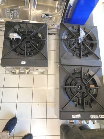 Pot Stoves 18" x 18" floor models, new single or double burners / natural gas or propane available new.