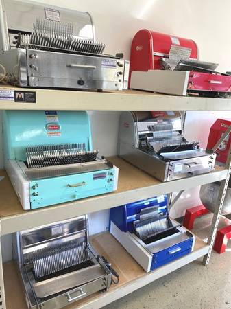Bread slicers automatic and manual, bagel-bun hinge slicers Oliver,