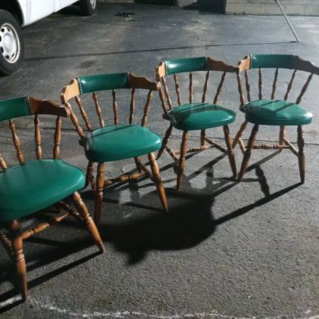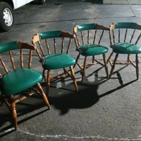 Bar tables and chairs 1 round table 7 rectangle tables ($75 each) 28 green chairs ($30 each) No rips, no tears, excellent condition All for $1,350 Text 630.247.sixsix60 To view all my listings...