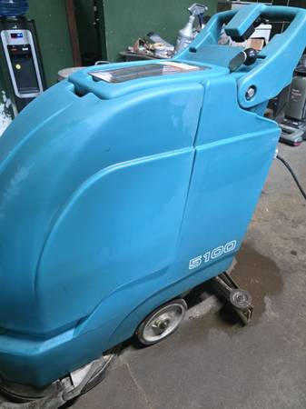 For sale is a Tennant 5100 walk-behind floor scrubber in excellent working condition. This machine has very low usage and comes equipped with brand new batteries, ensuring you get reliable performance. The brushes and all working parts are in great shape, and it includes the 24-volt charger as shown in the photos.