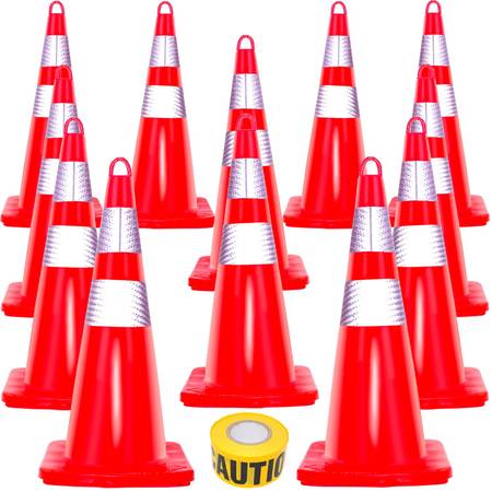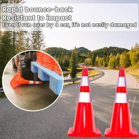 Highly Visible: Equipped with two reflective collars, these 28-inch traffic cones provide 360-degree visibility