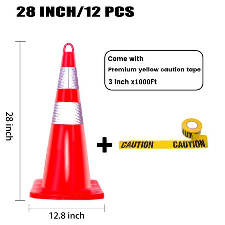 ‣ Included: 12 Cones + 3" x 1000ft Yellow Caution Tape