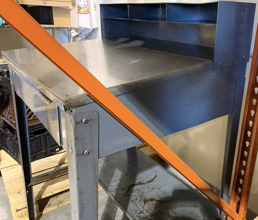 **Imperfections to NOTE: 1. slight bend in metal - top of right cubby 2. lucite type desktop has some scratches on it 3. Surface rust in spots (heaviest would be on the bottom shelf & support brackets that hold that shelf (light sanding & Rust-Oleum spray paint would bring it back to life)