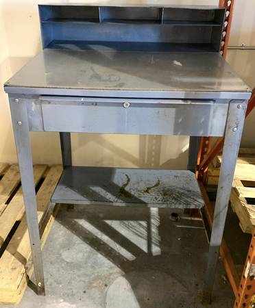 Metal Work Shop Desk w/ 3 Pigeonhole Riser