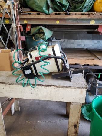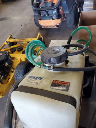 The 6 US gallon tank and weather-resistant, momentary spray switch with a 6' lead for main nozzle operation provides an instant spray while spot spraying weeds in the lawn and garden. The included spray wand with hose is effective for spraying weeds along edges and fence lines. The 1 gpm pump, which runs off the mower's 12-volt battery supply at 10-20 psi, is mounted behind the front plate to protect it from damage.