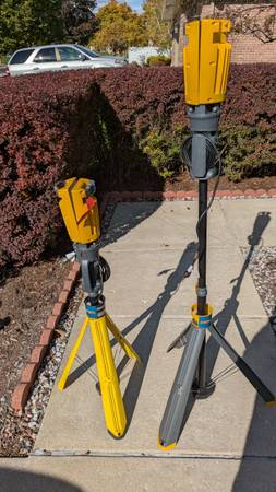 80 W per light, approx 10000 - 12000 Lumens per light Metal adjustable tripod with quick release system to easily lock and unlock the height. One of the tripod has a missing clamp holding a lamp in...