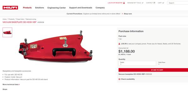 Hilti DD HD30-VBP Base plate ( base plate alone is $1200)