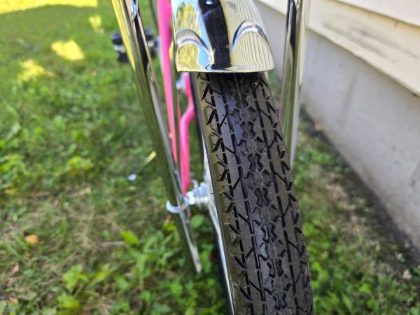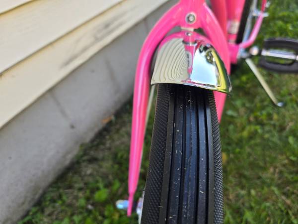 Features the iconic Schwinn Fair Lady steel frame and rigid fork.