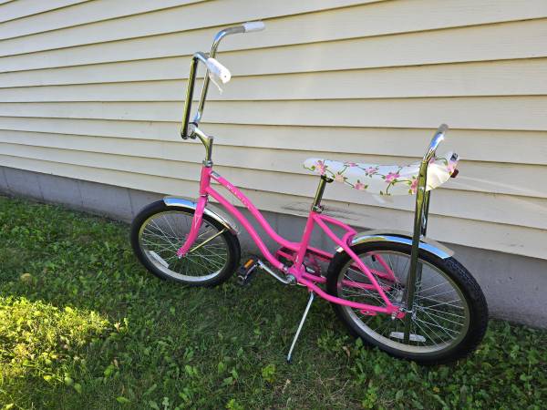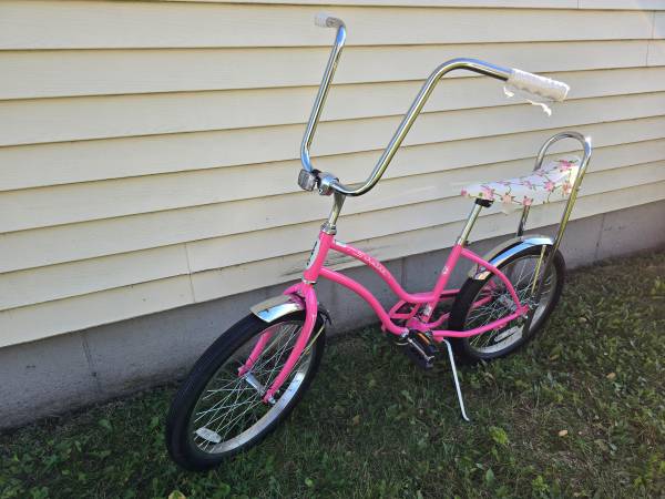 Includes classic banana seat and high-rise ape handlebar with grips.