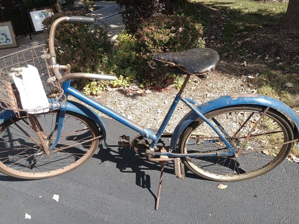 Columbia /Westfield Compax Paratrooper Bike is a WWII bike created for the military with its unique folding design. This light blue bike has a 20" frame and 26" tires also, comes with a basket. From a biker collector and in good condition for its age. Please Call or contact John
