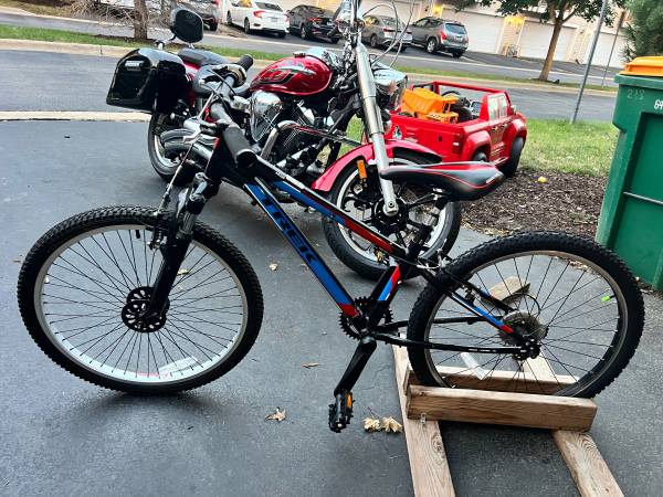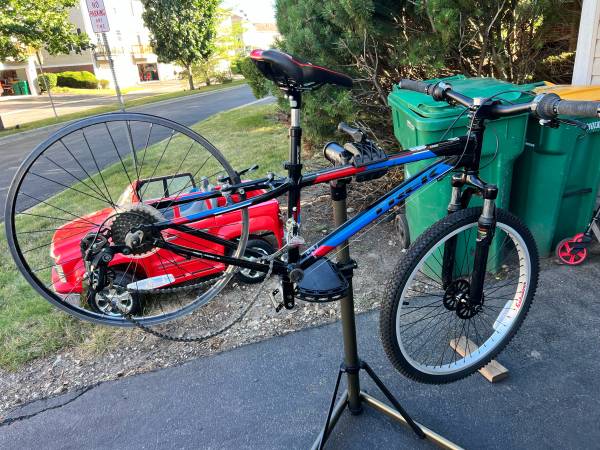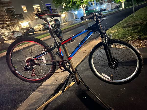 It’s the trek MT220 entry level beginners bike. Wheels size is 24 so it is suitable for for big kids or teenagers who would like to start doing mountain bike without breaking the BANKS.