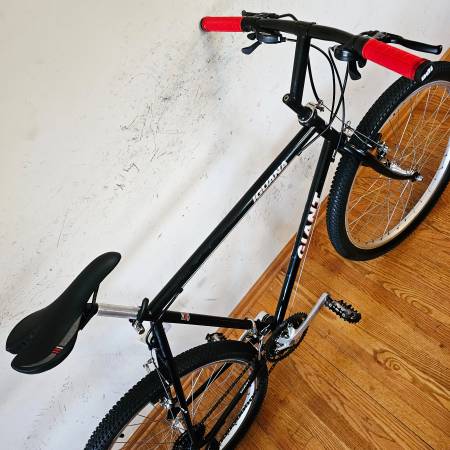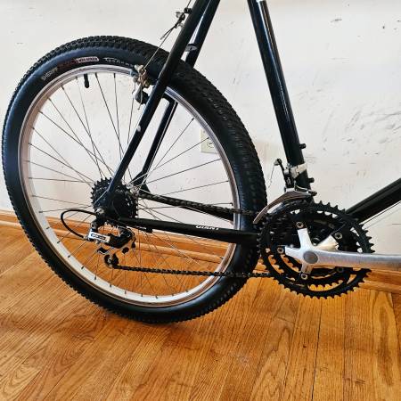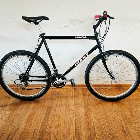 Awesome 21 speed GIANT IGUANA All Terrain Touring Crossover Adventure MTB tuned up ready to ride. 4130 CroMo Design frame, Lightweight aluminum Suntour XCE components. Brand new SERFAS tires and tubes, brand new Bontrager sport saddle, brand new ODI lock on grips. Adjustable stem for dialed in comfort. Index thumb shifters, front and rear side center pull V brakes. Perfect for commuting, triathlons, Touring or riding the trails. All around perfect bike. XXL 23-inch frame, 26-inch Wheels. Bontrager dual purpose on/off road tire, Araya hoops, alloy sealed hubs. High Gloss Charcoal Black Metallic finish with red and white accents. This is a high-quality GIANT cycle from a bike shop, not a cheap department store bicycle. A comparable Bike new today would cost over $1000 new. An excellent deal at $185. Please no offers lower than asking price. Message if interested. Thanks for looking.