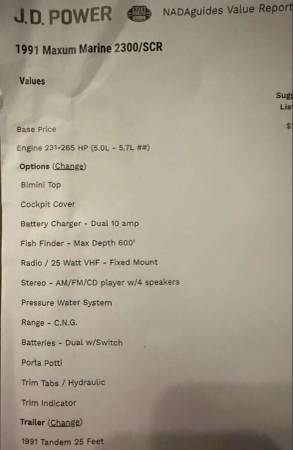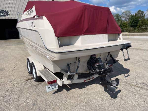 1991 Maxum 2300 SCR with trailer for sale. Specs in the pics. New cockpit cover done in 2021 and top side seats reupholstered in 2019. It has been stored in heated storage while I owned it. It ran well while in my possession, but has not been on the water in a couple of year due to the lack of time personally. Now, I don't want to pay the storage when I don't use it. Will consider reasonable lowball offers to get it gone.
