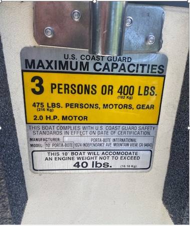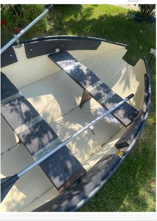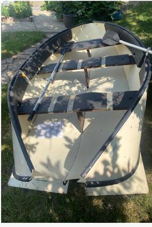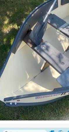 10 Ft portable boat. Boat Folds flat as picture Very nice to fit in car or truck Oars included 3 persons or 400 pounds No Title Will Consider Offers