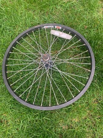 26” bike wheel. Last 2 photos are for the 26” wheel axle zoom in. Please reply with your phone number for arrangement communication. Thanks for looking.