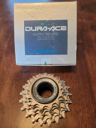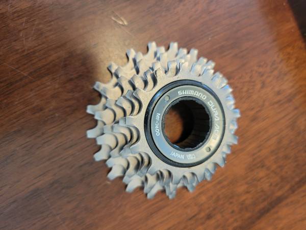 Thanks for looking at this Shimano Dura Ace NOS MF-7400. This multiple freewheel features 6 speeds and has zero signs of use or installation. Big cog = 21 teeth, Little Cog = 13t.