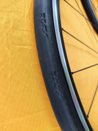 Wheels weigh just 1570 grams. The freehub is a Shimano HG11, compatible with many Shimano and SRAM cassettes. Spokes are aero-bladed 14 gauge. 3 spare spokes and nipples are included, all of which came with the wheels originally.